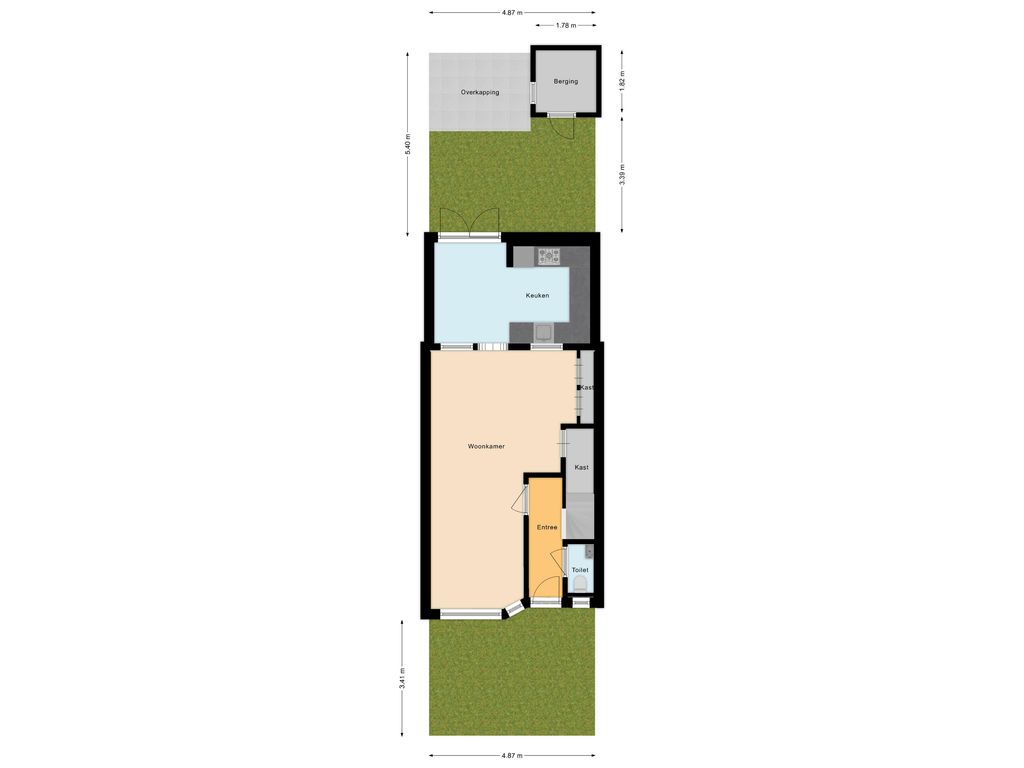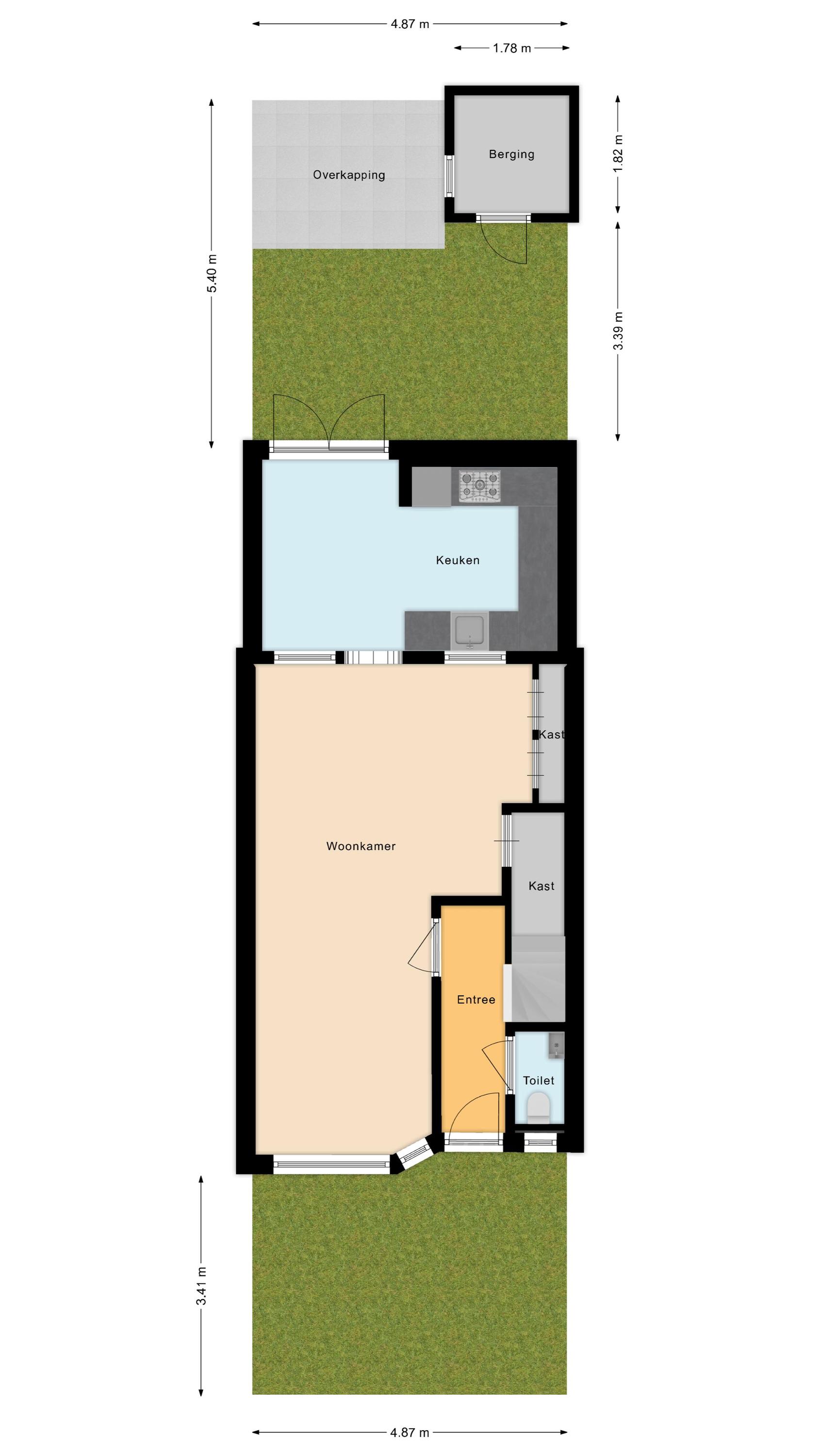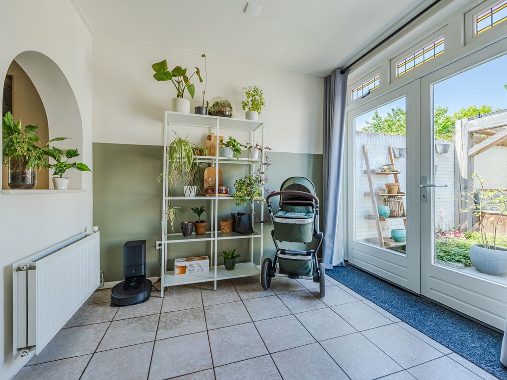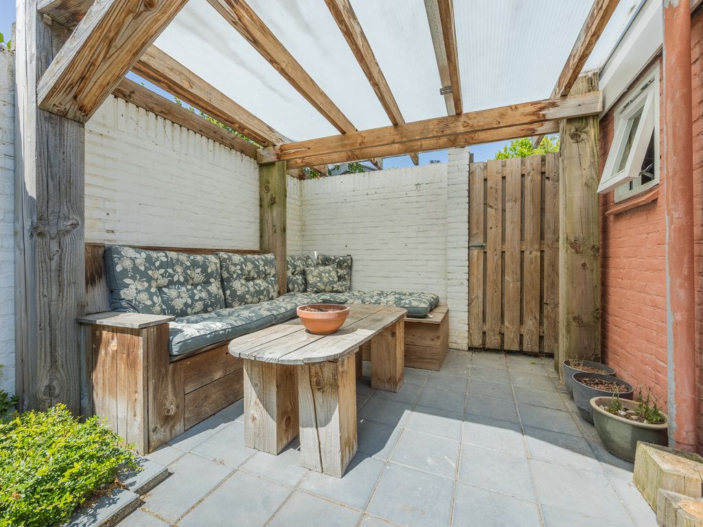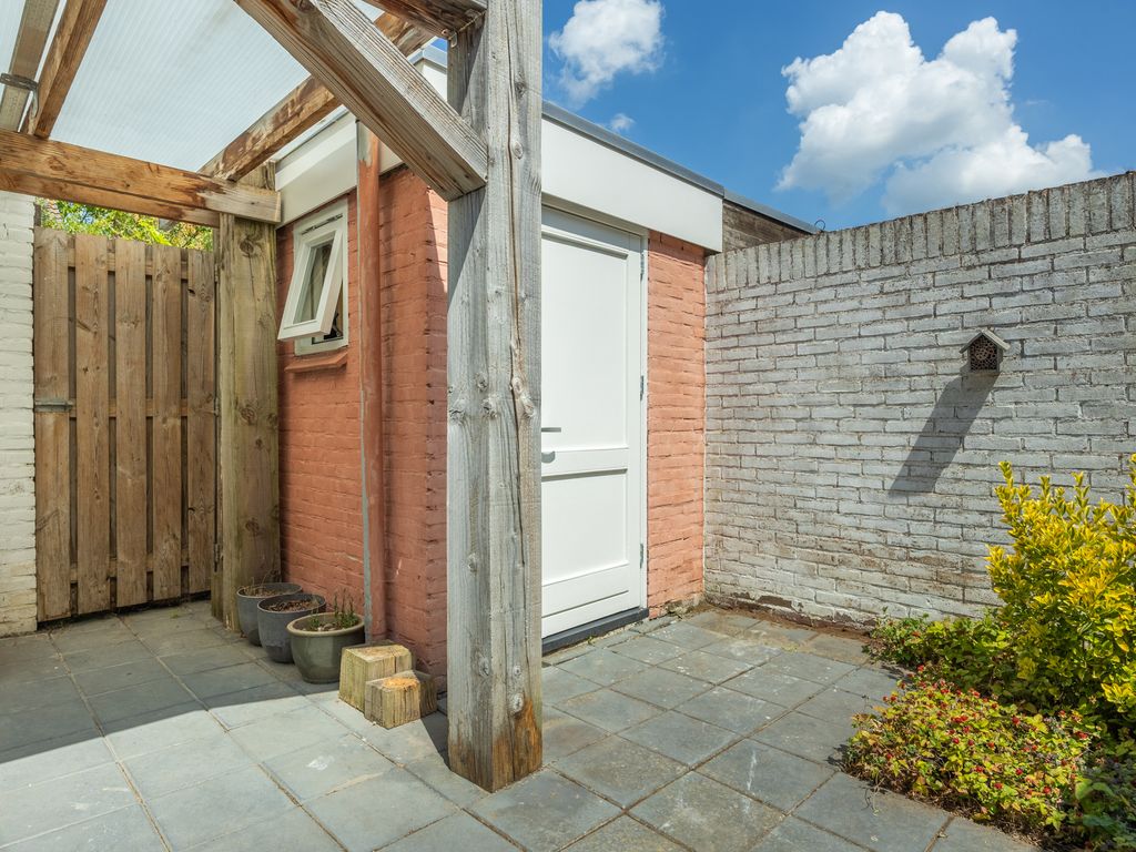 De achtertuin (ca. 5.37 x 4.86 m) is verzorgd aangelegd en voorzien van een overkapping, achterom en een stenen berging met elektra. De berging is in 2021-2022 gerenoveerd, met een nieuw dak, kozijn en deur.