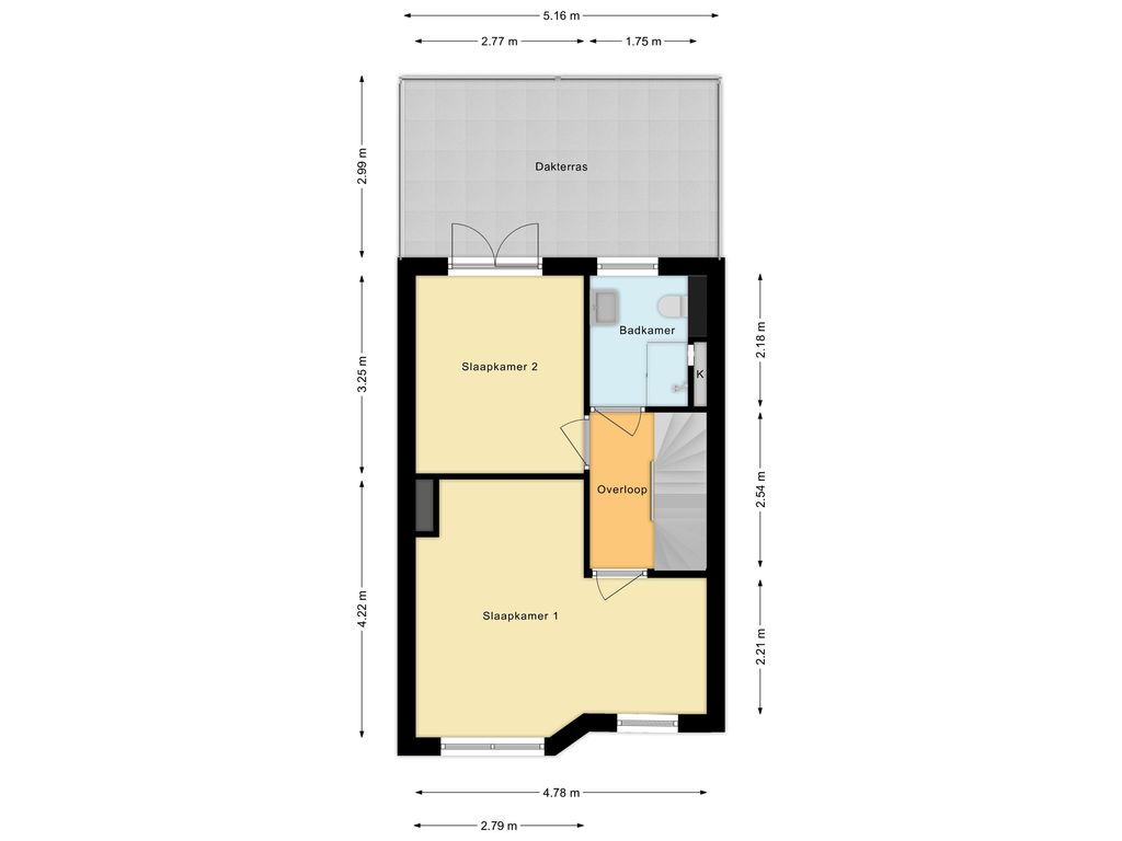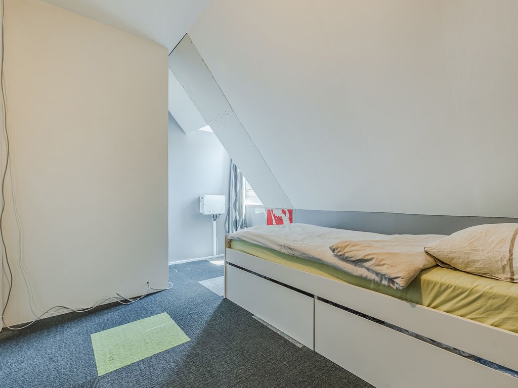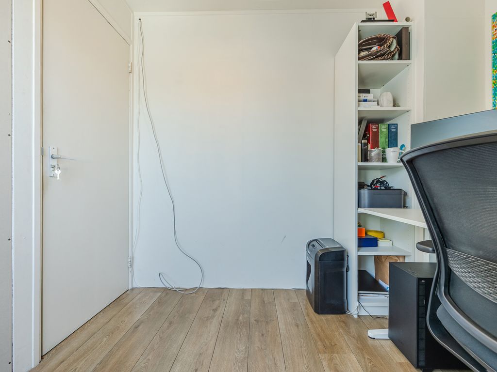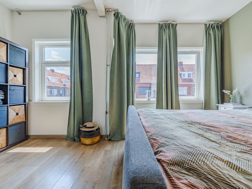 Hier bevinden zich twee ruime slaapkamers (voorheen drie). De slaapkamer aan de voorzijde heeft een erker en vernieuwde kozijnen met draai-kiepramen. De kamer aan de achterzijde beschikt over openslaande deuren naar het platte dak, dat beloopbaar is.