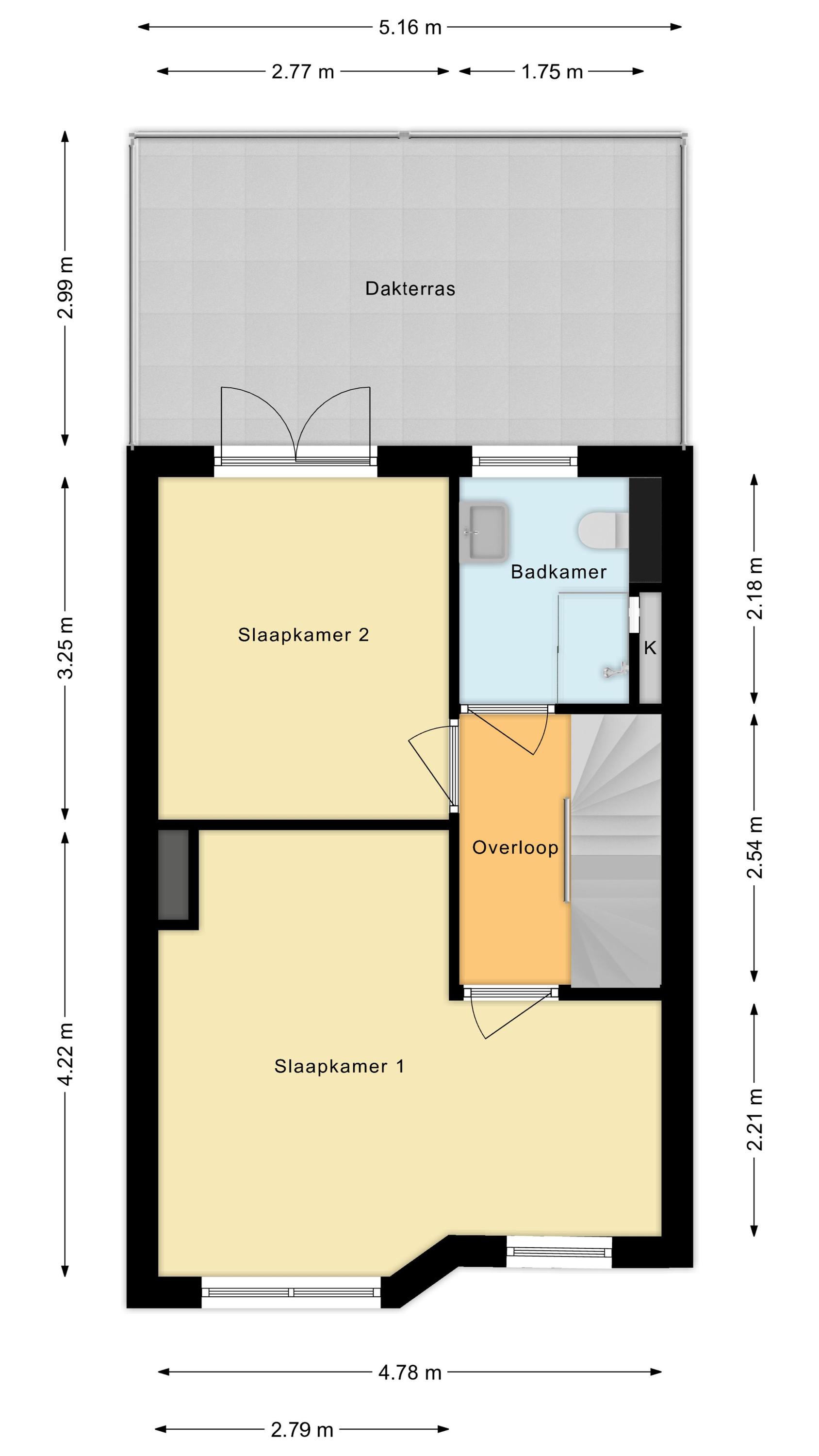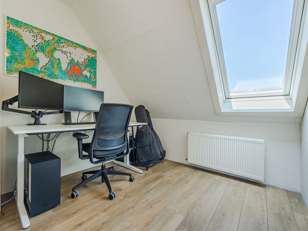 Via de vaste trap kom je op de voorzolder met wasruimte. Aan de voorzijde bevindt zich een ruime kamer met dakkapel, aan de achterzijde een kleinere kamer met een groot daktuimelraam. De indeling is flexibel en eenvoudig aan te passen.