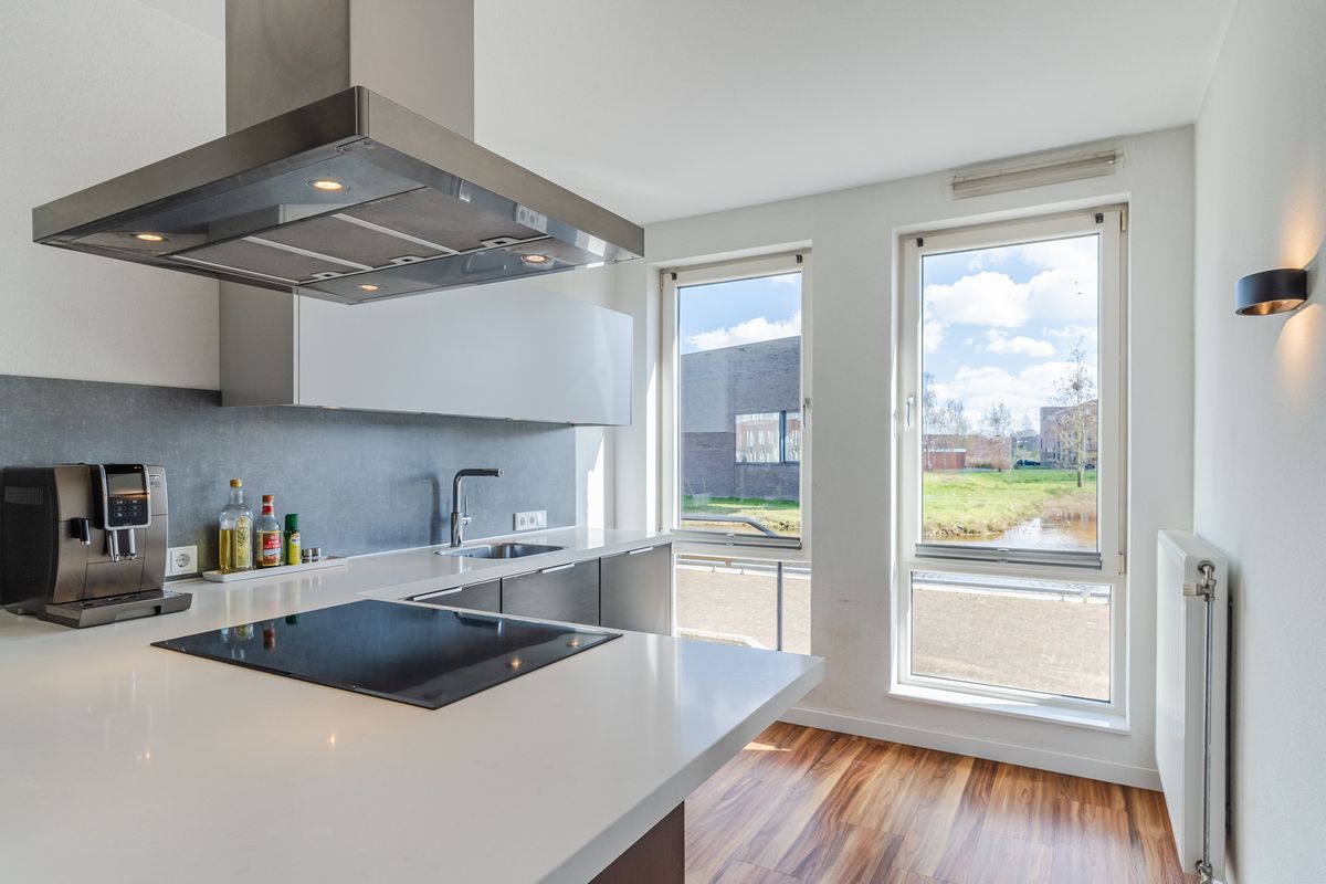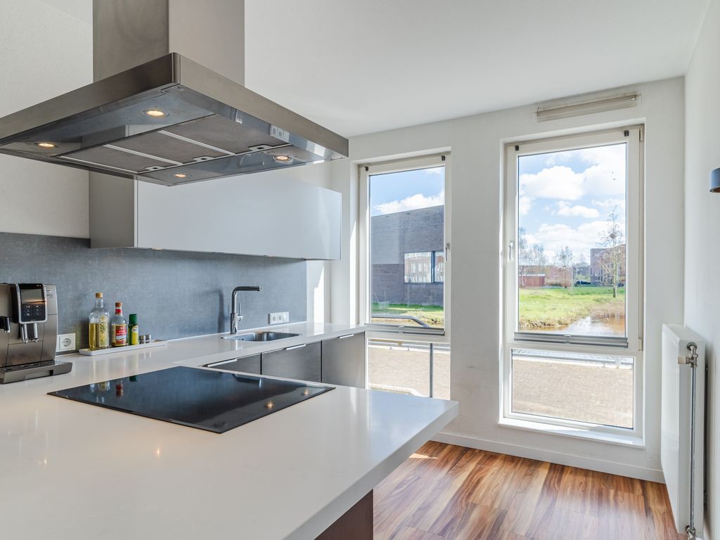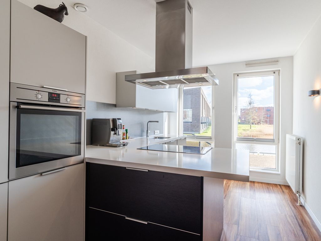 De open keuken (ca. 2,69 x 4,64 m) bevindt zich aan de voorzijde van de woning en is voorzien van een luxe inbouwkeuken.