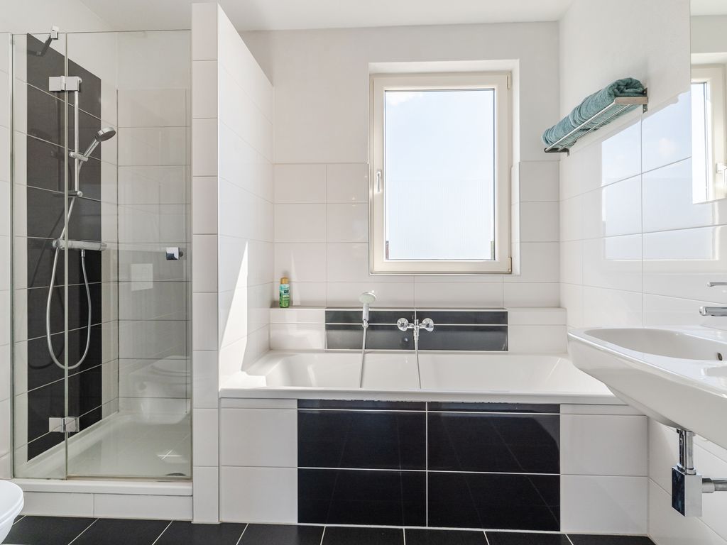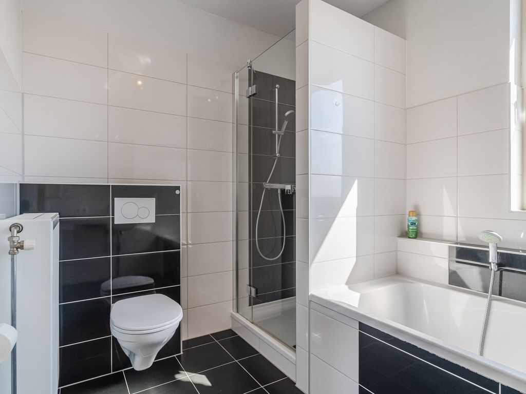 De badkamer is voorzien van een ligbad, douche, wastafel en een wandcloset, erg compleet dus!