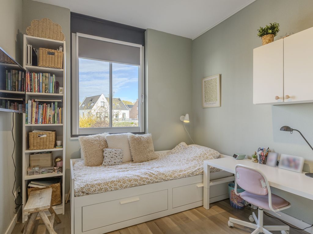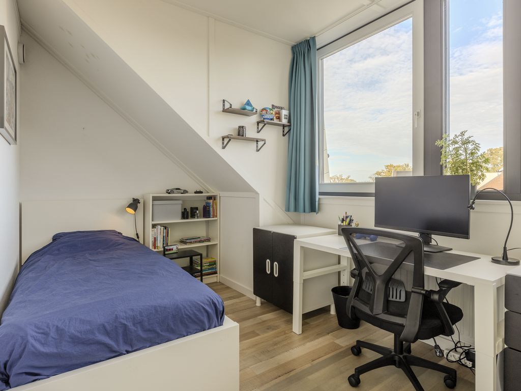Aan de achterzijde ligt een ruime slaapkamer met dakkapel.