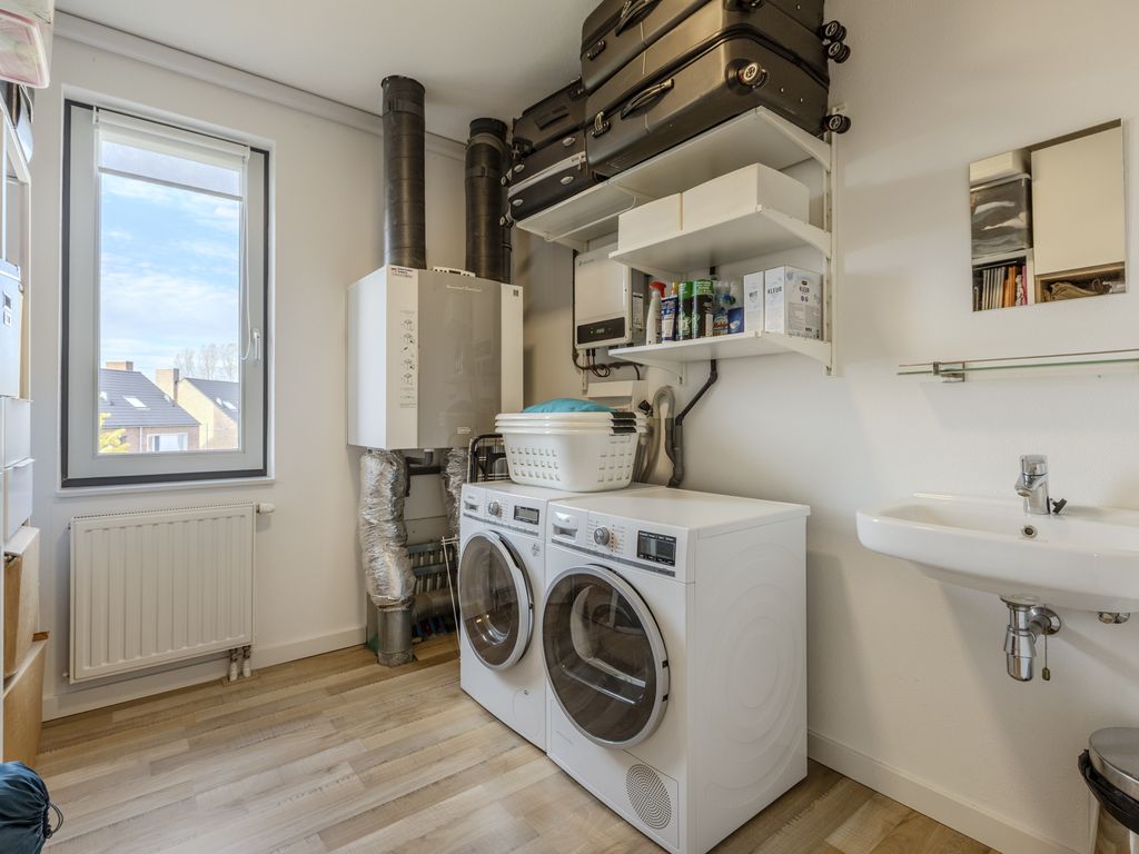 Centraal bevindt zich de was- /bergruimte met daglichttoetreding en opstelplaats van de WTW-installatie.
