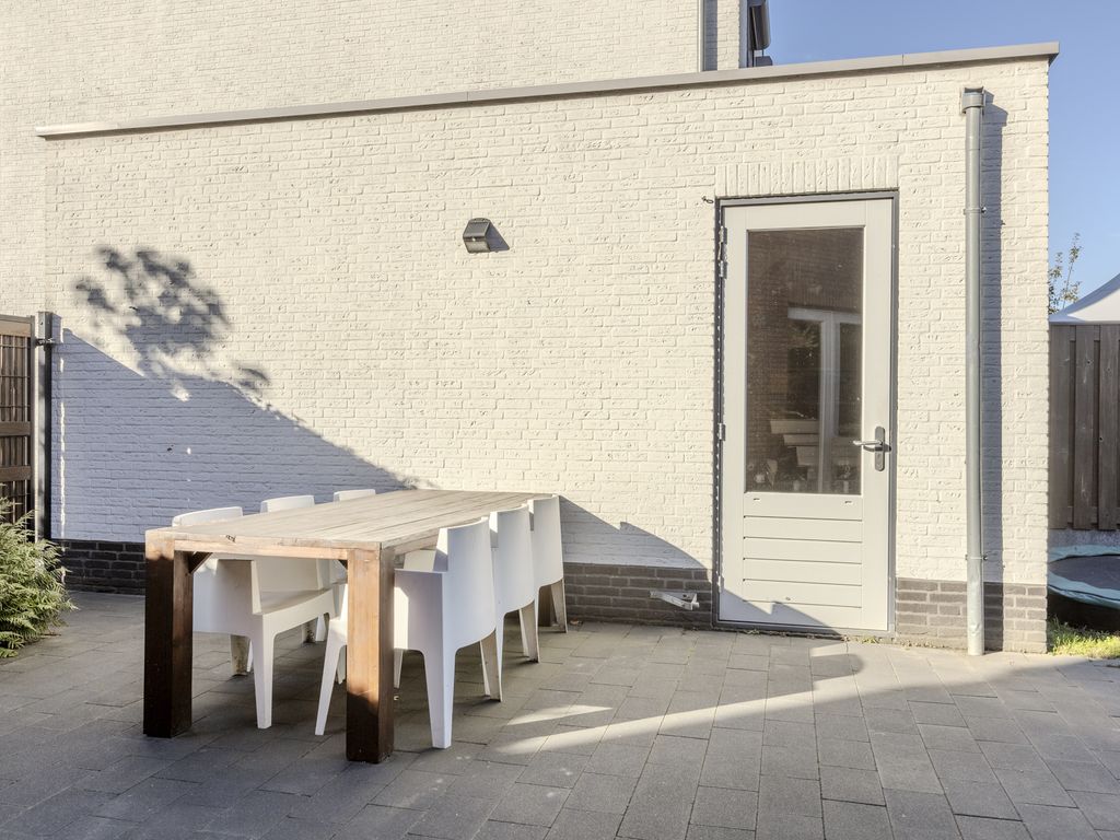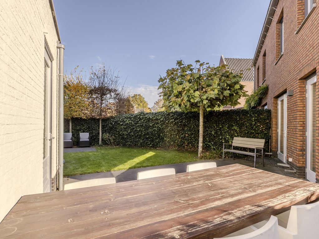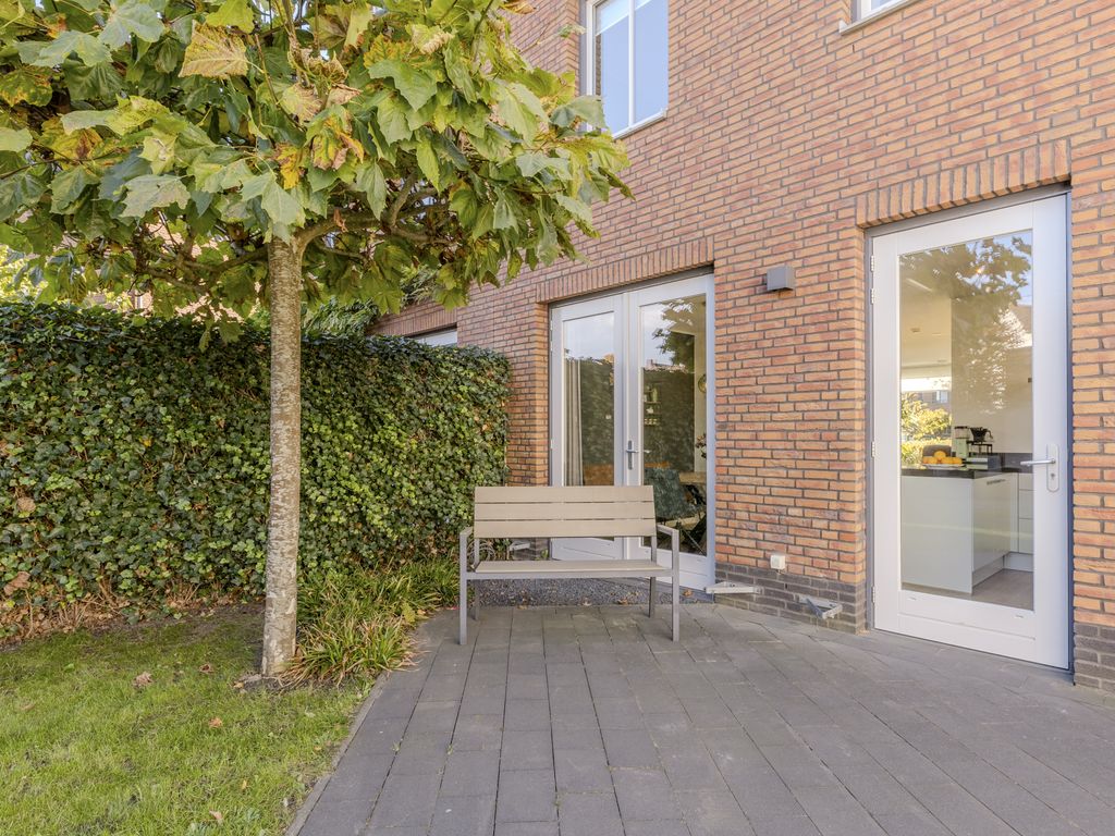 De tuin rondom de woning biedt veel privacy en is gunstig gelegen ten opzichte van de zon, waardoor er de hele dag door zowel zon- als schaduwplekken zijn. Het perceel is fraai aangelegd met gazon, enkele bomen en meerdere zitplaatsen. De achtertuin is bereikbaar via zowel de voor- als achterzijde.
