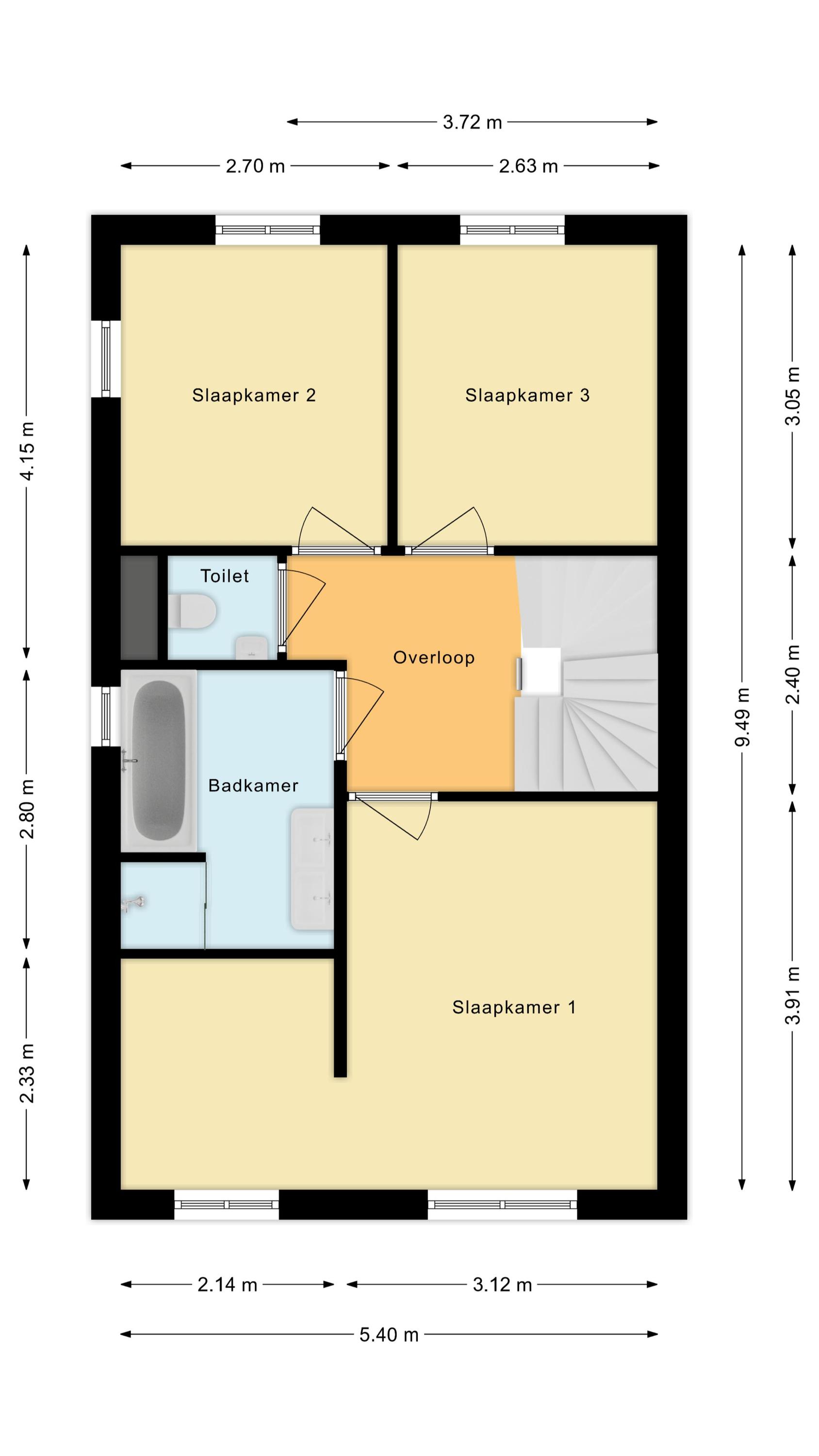 Via een vaste trap toegang tot de volwaardige tweede verdieping met ruime overloop.
