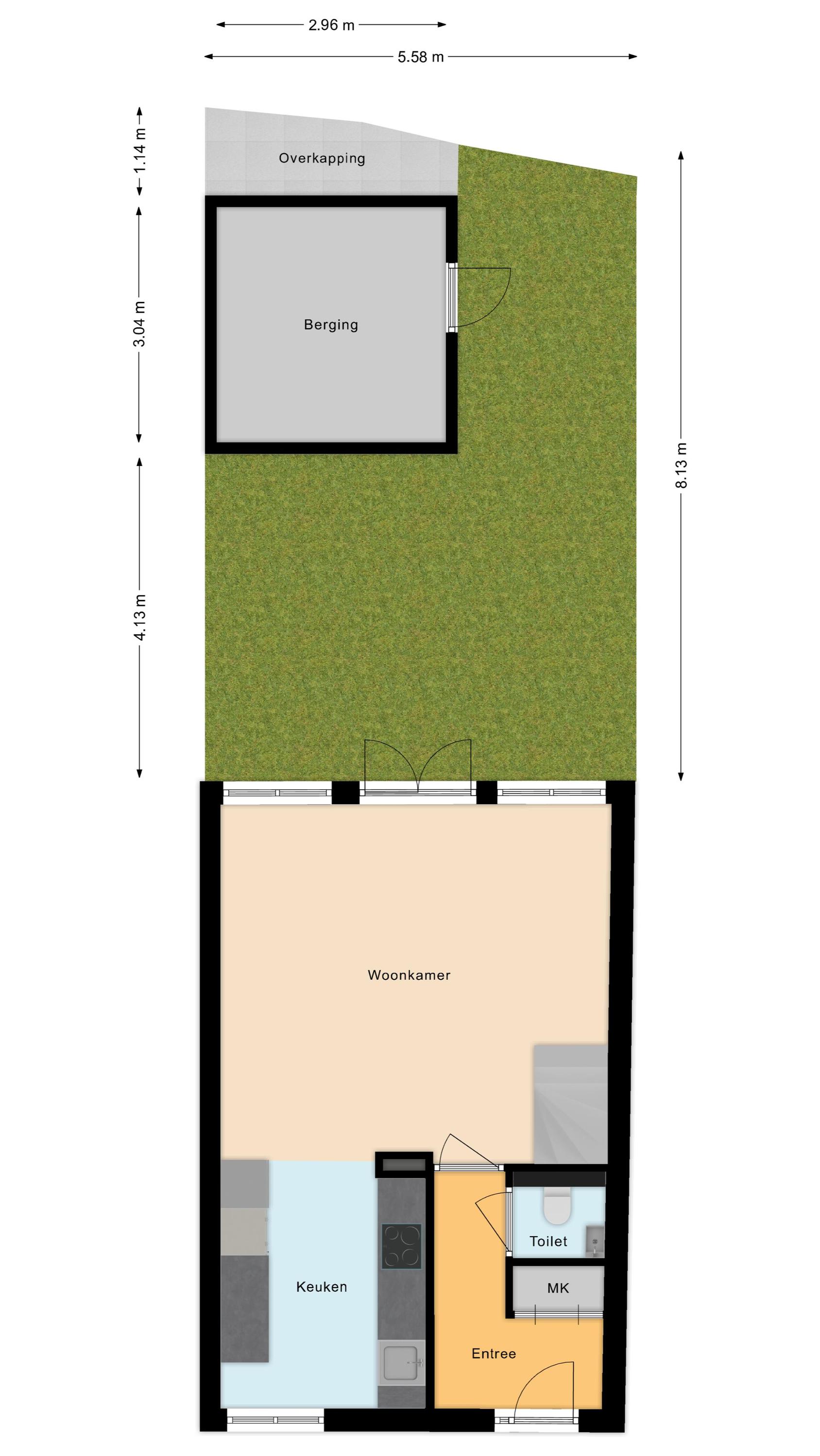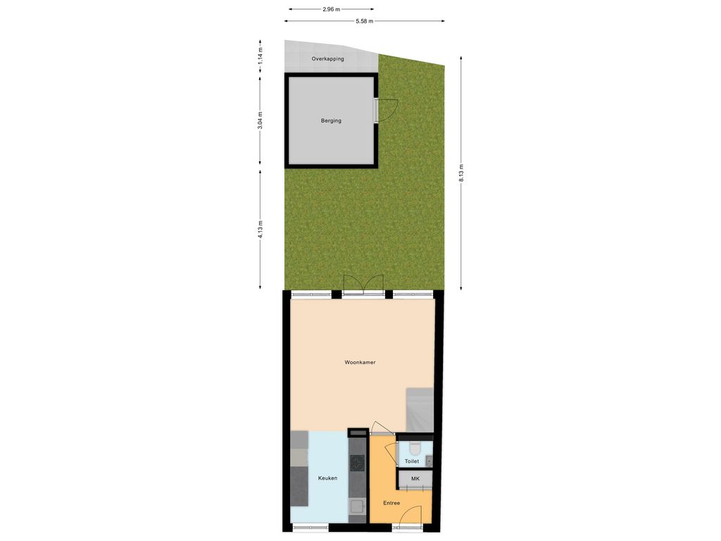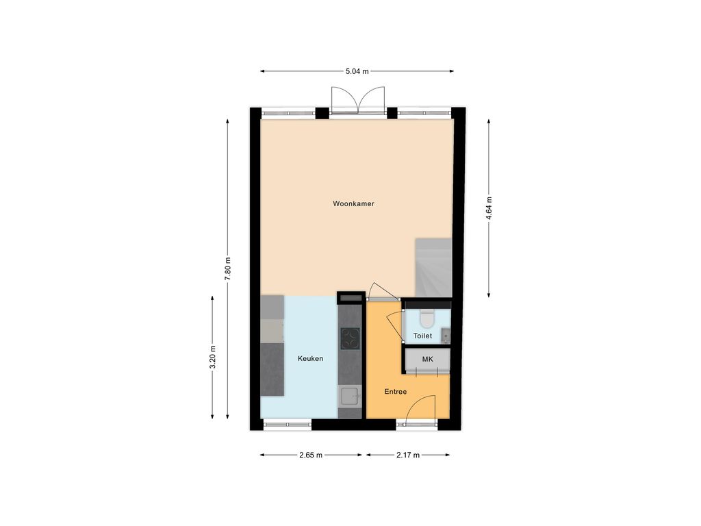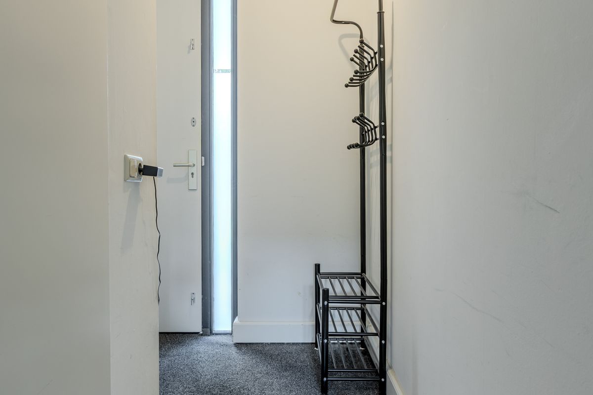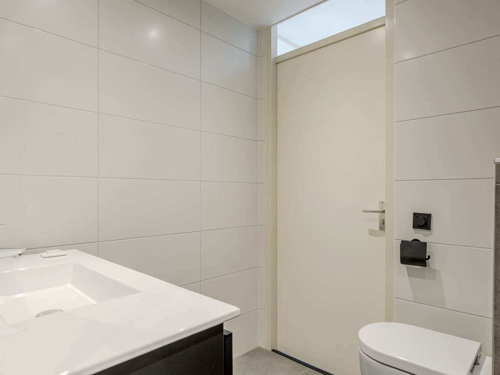 Hal/entree met meterkast (6 groepen en 2 aardlekschakelaars), unit stadsverwarming en toegang tot de toiletruimte, welke in 2021 in dezelfde stijl als de badkamer is vernieuwd en voorzien van wandcloset en fonteintje.