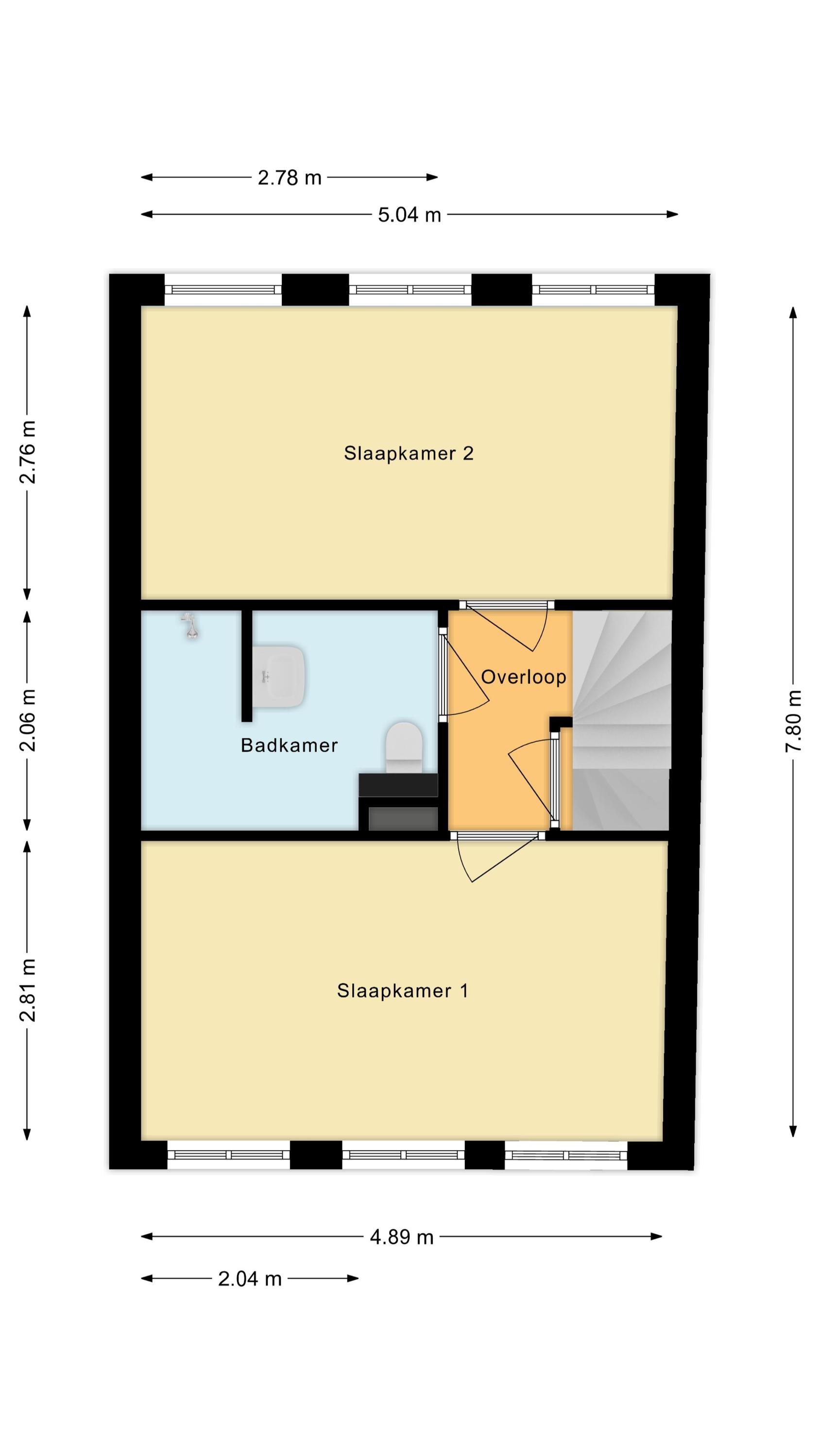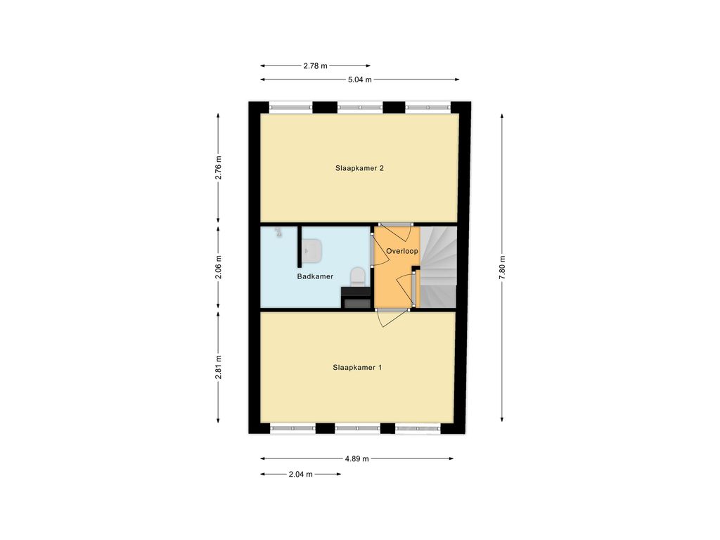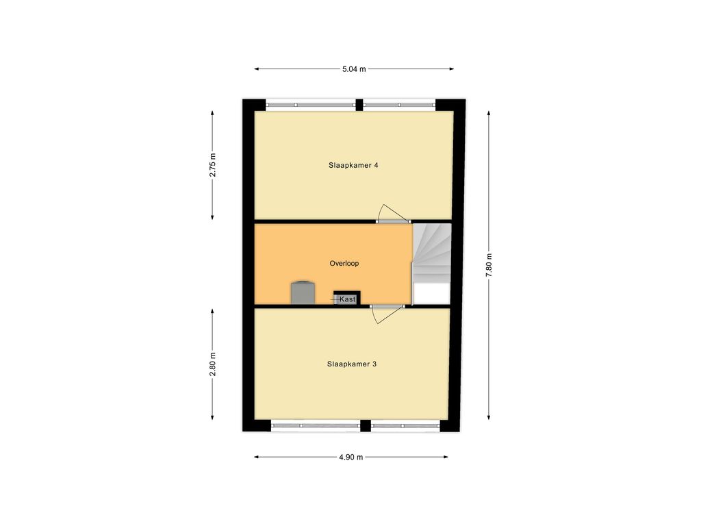 Overloop met trapopgang naar de tweede verdieping en toegang tot twee royale slaapkamers aan de voor- en achterzijde.