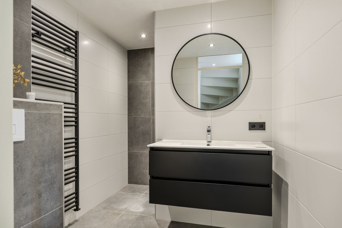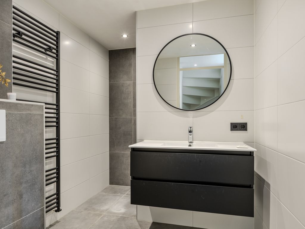 De badkamer is in 2023 volledig vernieuwd en heeft door een slimme tussenmuur een praktische indeling gekregen. De ruimte is luxe en hotel-chique afgewerkt en voorzien van een ruime inloopdouche, wastafelmeubel en wandcloset. Ook op deze verdieping ligt dezelfde laminaatvloer.