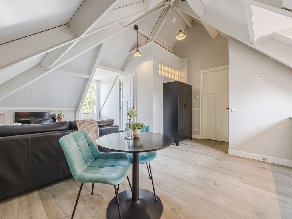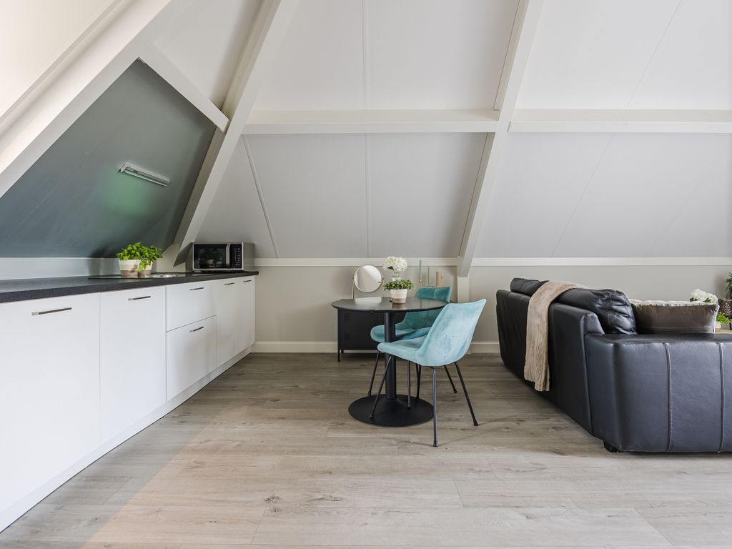 De studio/appartement onder de kap is bereikbaar via een afsluitbare deur vanuit de overloop én via een eigen voordeur op de begane grond. Dankzij de aanwezigheid van een keukenblok, een badkamer met inloopdouche, wandcloset, wastafelmeubel en bergruimte, en een eigen dakterras kan deze ruimte volledig zelfstandig functioneren. Daarmee is het een ideale plek voor gebruik als B&B, voor logees of voor kinderen die graag op zichzelf willen wonen.