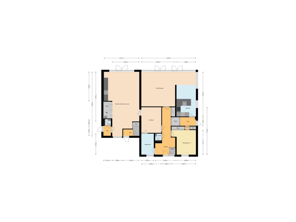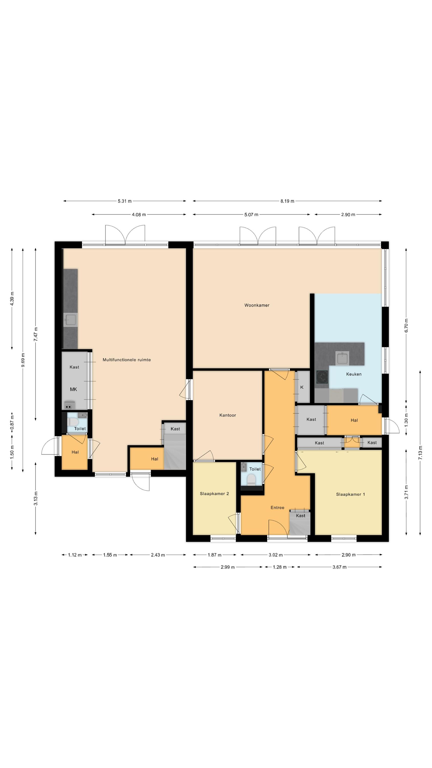 Om de veelzijdigheid van deze woning verder te laten zien, zijn er impressietekeningen gemaakt. Hierop is onder andere te zien hoe de multifunctionele vleugel kan worden ingericht als royale leefkeuken of als uitbreiding van de woonkamer. Deze impressies zijn beschikbaar in het move-account en worden gedeeld zodra een bezichtigingsafspraak is ingepland.