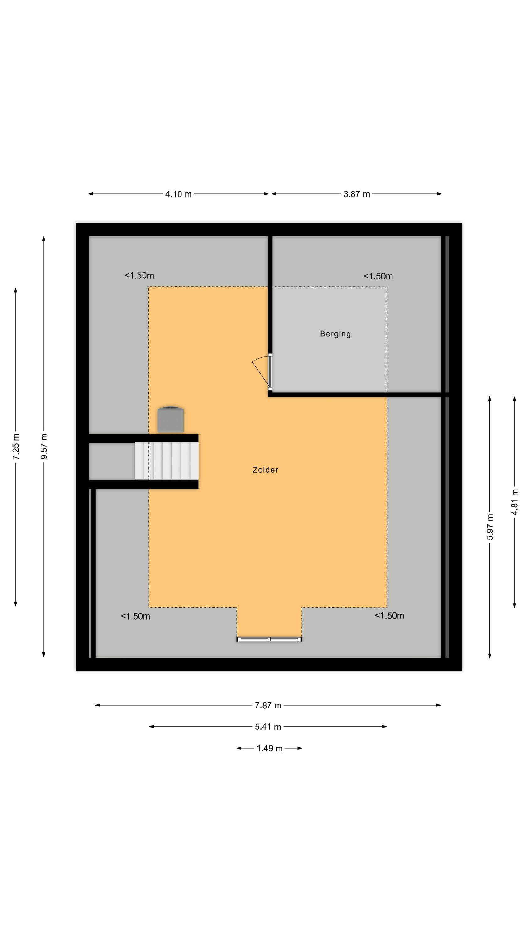 De tweede verdieping biedt een hoge zolder met dakkapel. Hier zijn eenvoudig twee extra slaapkamers te realiseren, terwijl ook de voorbereidingen voor een vierde badkamer al aanwezig zijn. Daarnaast bevinden zich hier een vierde set aansluitingen voor wasmachine en droger en de WTW-unit.