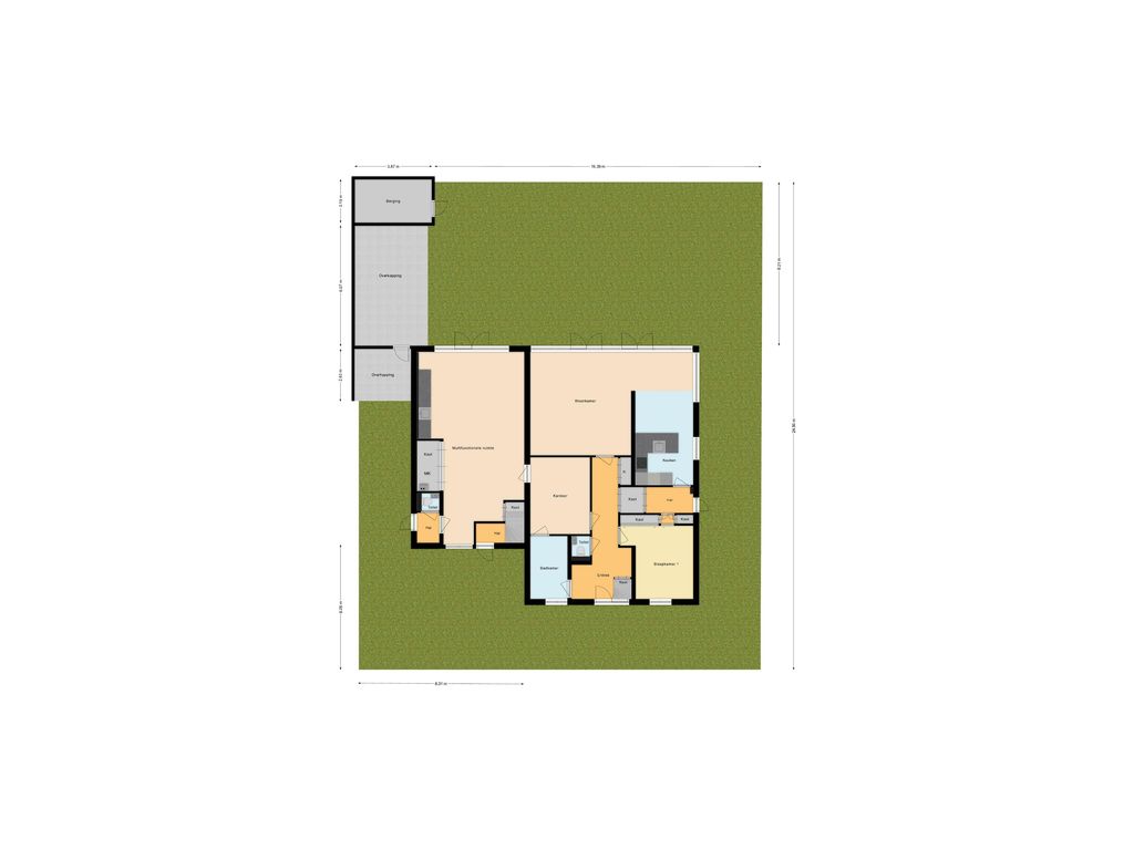 Naast de royale woonruimtes beschikt het huis over een zelfstandig studio/appartement met eigen opgang én een multifunctionele vleugel. Deze vleugel is gebouwd als mantelzorgwoning, maar kan ook worden ingericht als leefkeuken of als uitbreiding van de woonkamer. Ter inspiratie zijn hiervoor impressietekeningen beschikbaar, die in het move-account worden gedeeld zodra een bezichtigingsafspraak is ingepland.