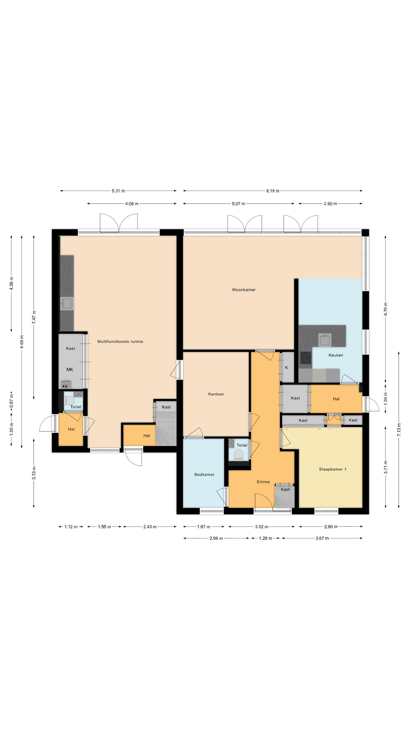 Deze woning leent zich voor uiteenlopende woonwensen. Zo is gelijkvloers wonen mogelijk dankzij de slaapkamer en badkamer op de begane grond. De zelfstandige studio maakt dubbele bewoning of B&B eenvoudig mogelijk, terwijl de multifunctionele vleugel ruimte biedt voor mantelzorg, een praktijk aan huis of uitbreiding van de leefruimte. Op de tweede verdieping kunnen bovendien extra slaapkamers en een vierde badkamer worden gerealiseerd.
