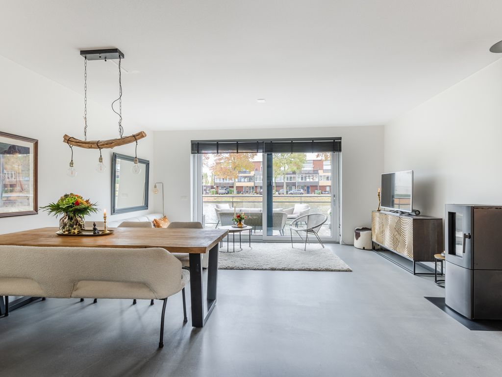De woonkamer (ca. 33 m²) is licht en ruim van opzet, voorzien van een pelletkachel en een grote schuifpui naar het terras van ca. 15 m². Dit terras ligt prachtig boven het water, waar u op zonnige dagen heerlijk kunt genieten van rust, uitzicht en voorbijvarende eenden, een plek die elk seizoen zijn charme heeft.