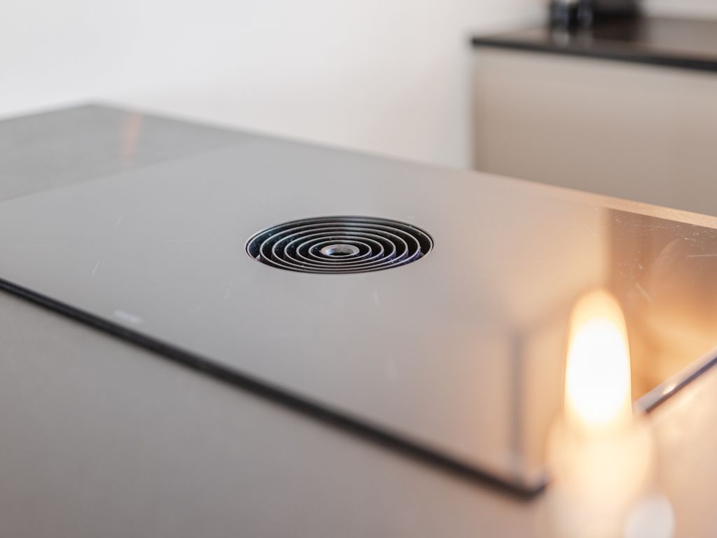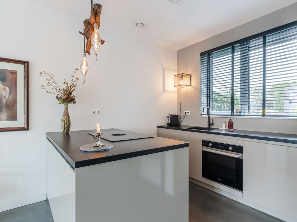 De open keuken ligt aan de voorzijde en is luxe uitgevoerd met een kookeiland voorzien van Bora-inductiekookplaat met geïntegreerde afzuiging, vaatwasser, oven, koelkast en veel bergruimte.