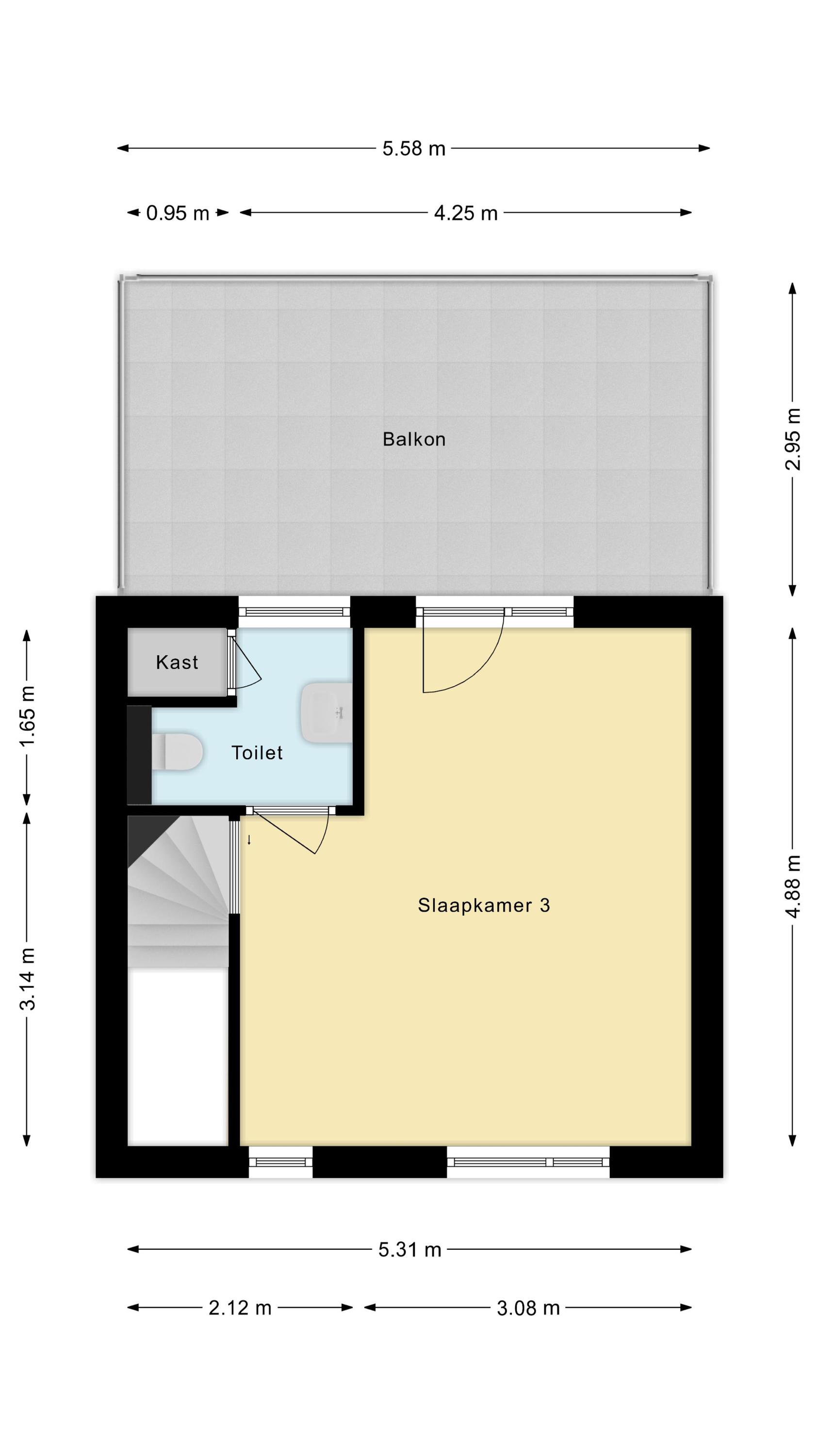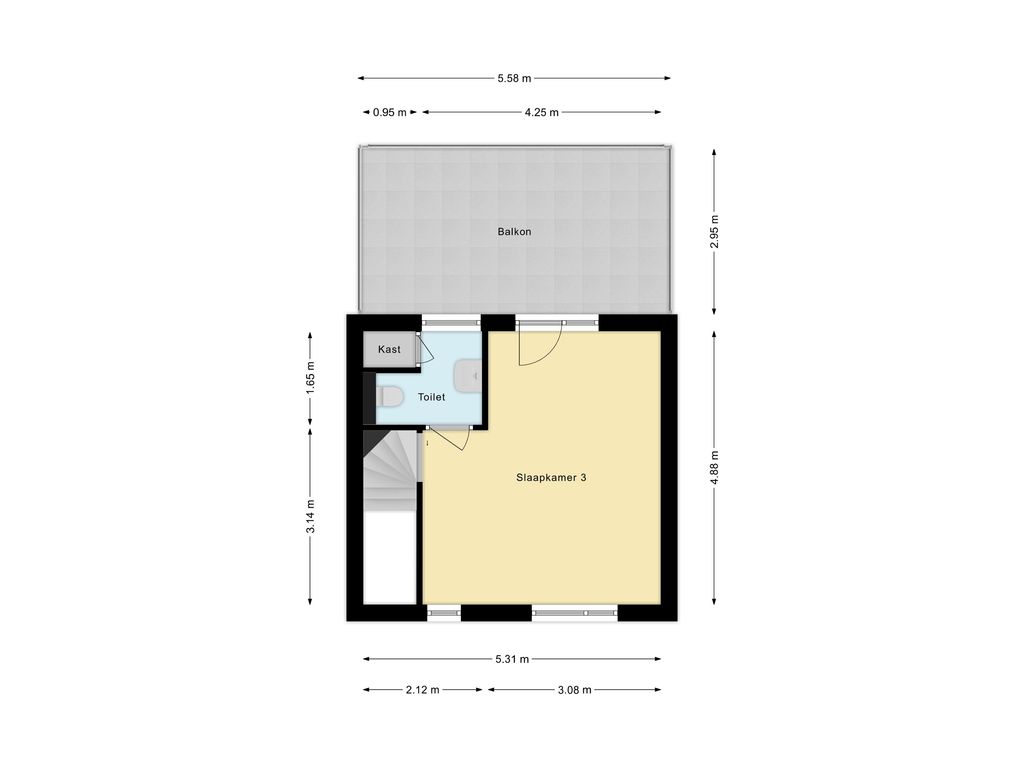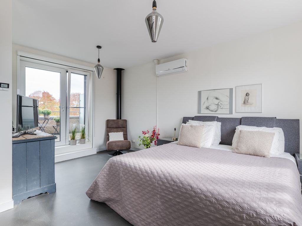De tweede verdieping is één grote open ruimte die momenteel is ingericht als masterbedroom met aangrenzend dakterras. Oorspronkelijk bood deze verdieping de mogelijkheid tot het creëren van twee aparte kamers. Verder is er een separate ruimte met wandcloset en wastafelmeubel.