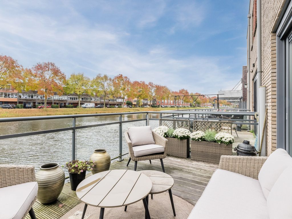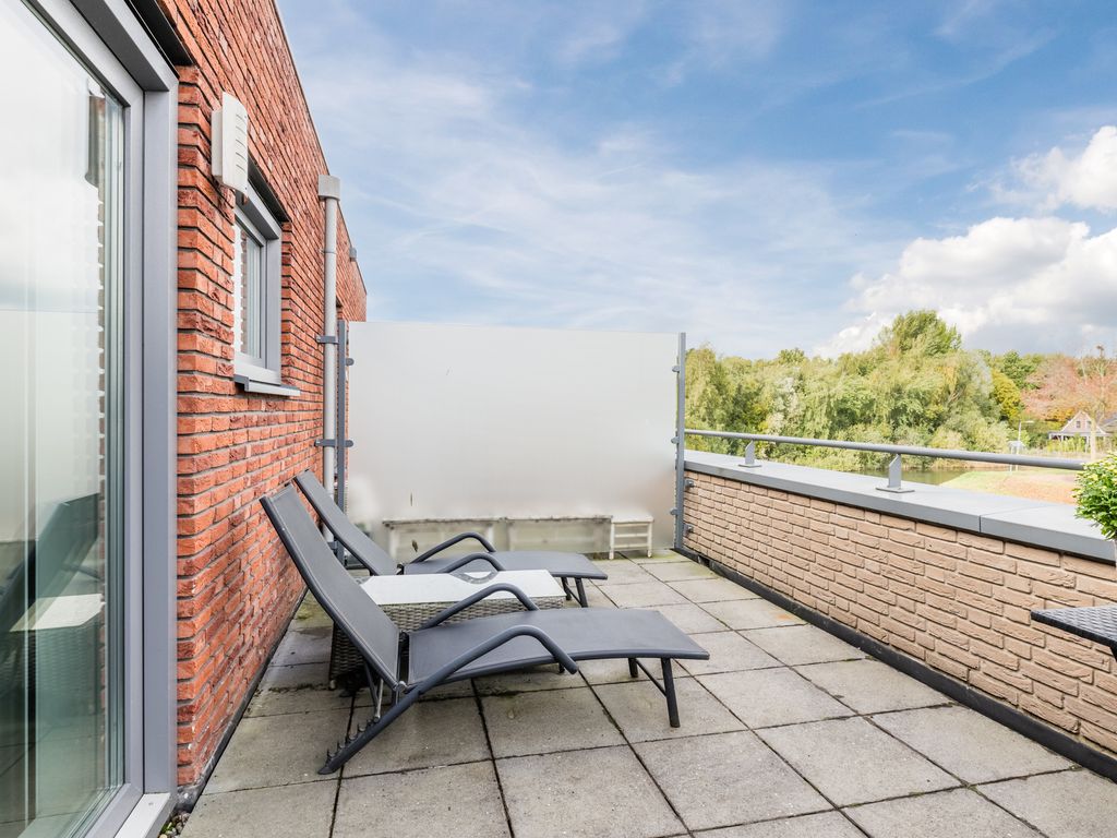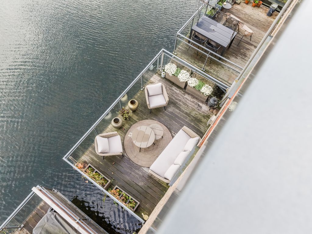 Het dakterras (circa 18 m²) is een heerlijke plek met optimale zonligging en vrij uitzicht over het water en het achterliggende groen, ideaal voor ontspanning of een diner in de avondzon.
