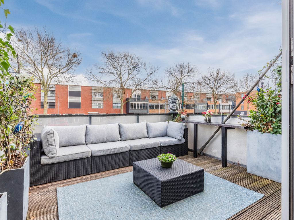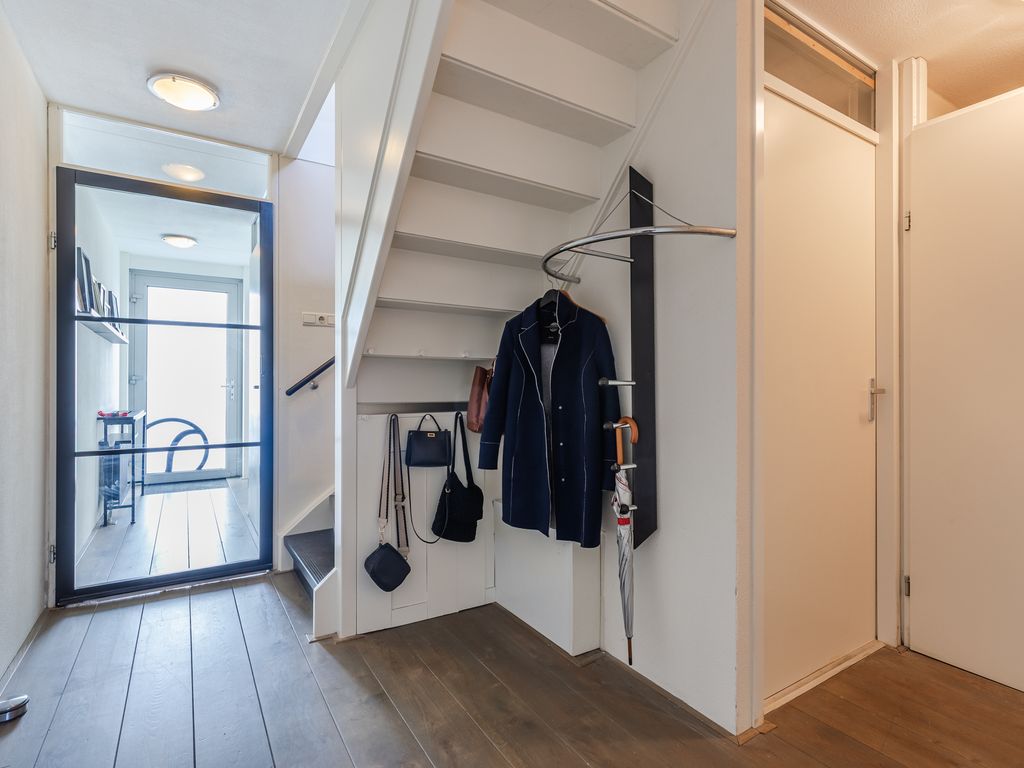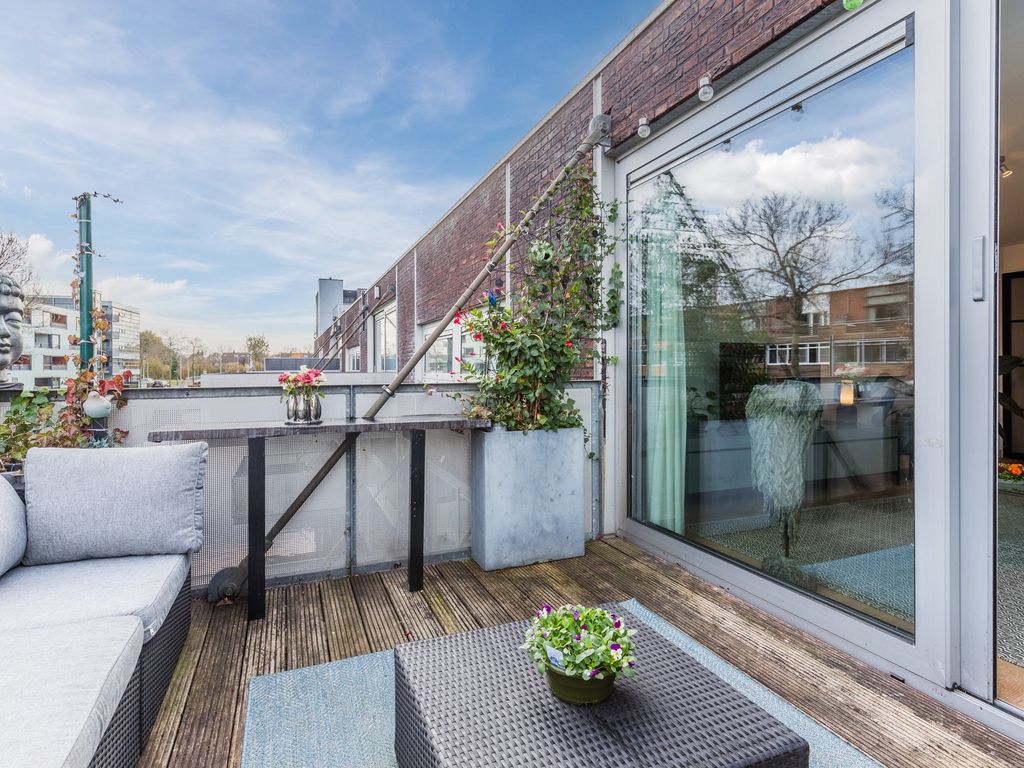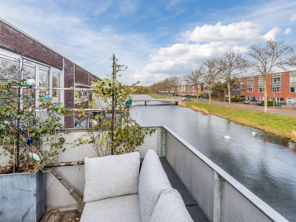 Heerlijk terras op de eerste verdieping direct boven het water, bereikbaar via de woonkamer. Aan de voorzijde is een tweede zitplaats gecreëerd; toegestaan zolang parkeren op eigen terrein behouden blijft. Oprit aan de straatzijde.