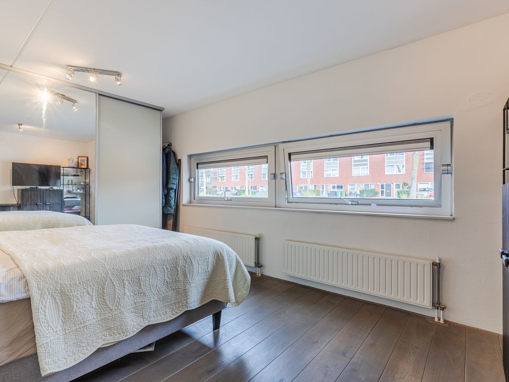 Grote slaapkamer aan de achterzijde (samengevoegd uit twee kamers; eenvoudige terugkeer naar 2 kamers mogelijk).