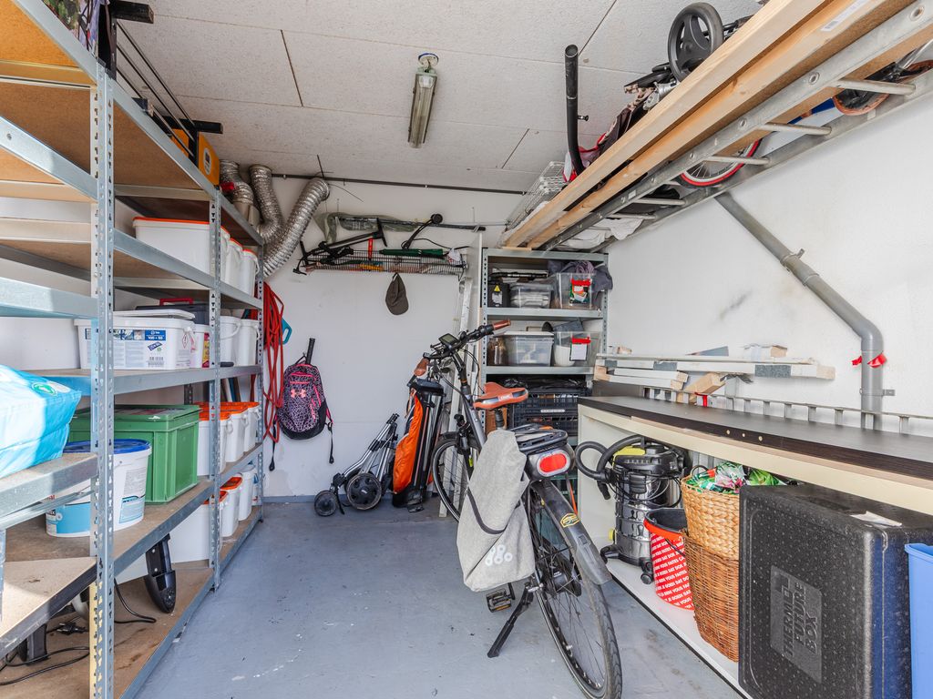 Aan de voorzijde een inpandige berging met elektra. In dit woningtype is in sommige gevallen via de badkamer een doorgang naar de berging gerealiseerd; dit behoort hier eveneens tot de mogelijkheden.