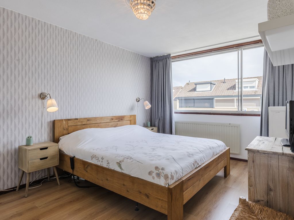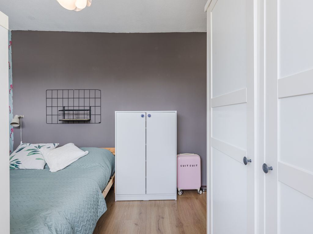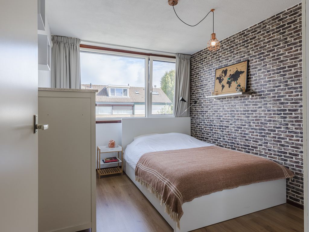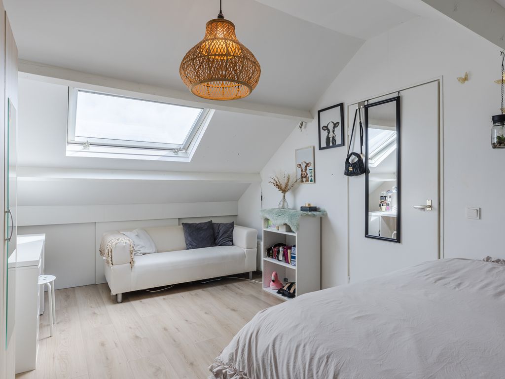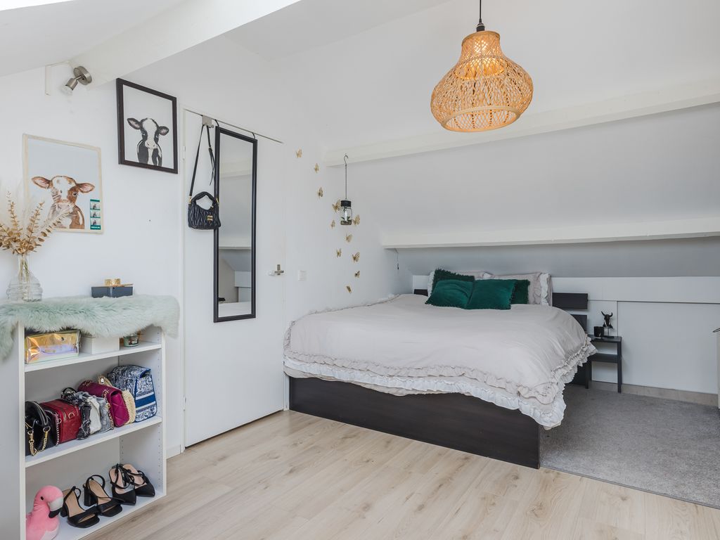 Tevens is er in de slaapkamer een groot Velux dakraam geplaatst en de ruimte is voorzien van een smaakvolle laminaatvloer.