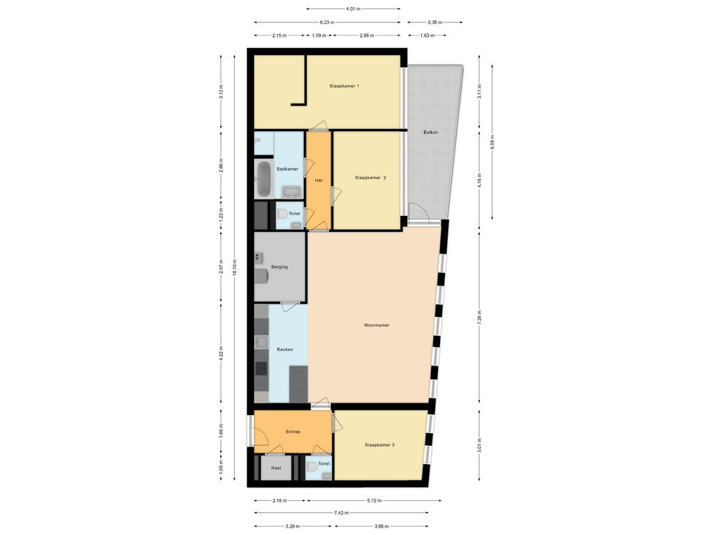• Slaapkamers: Het appartement heeft drie ruime slaapkamers. De Master bedroom beschikt zelfs over een inloopkast.
