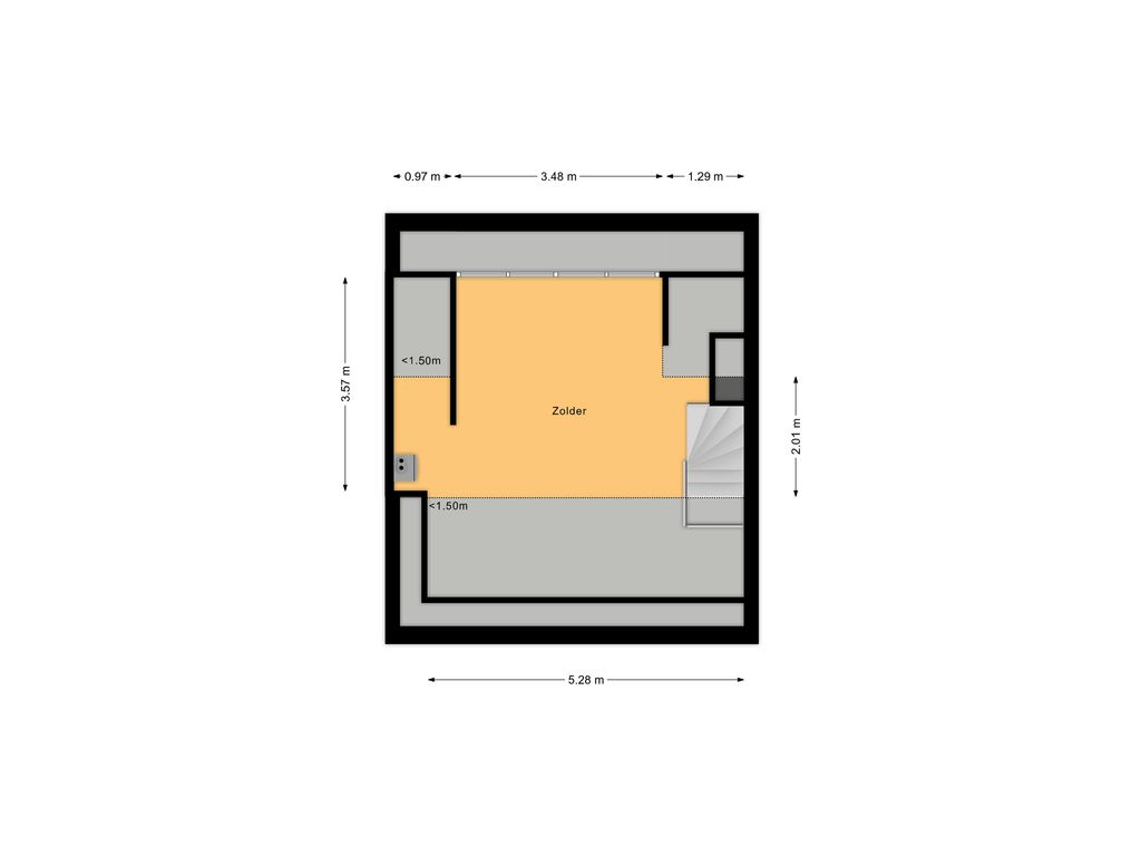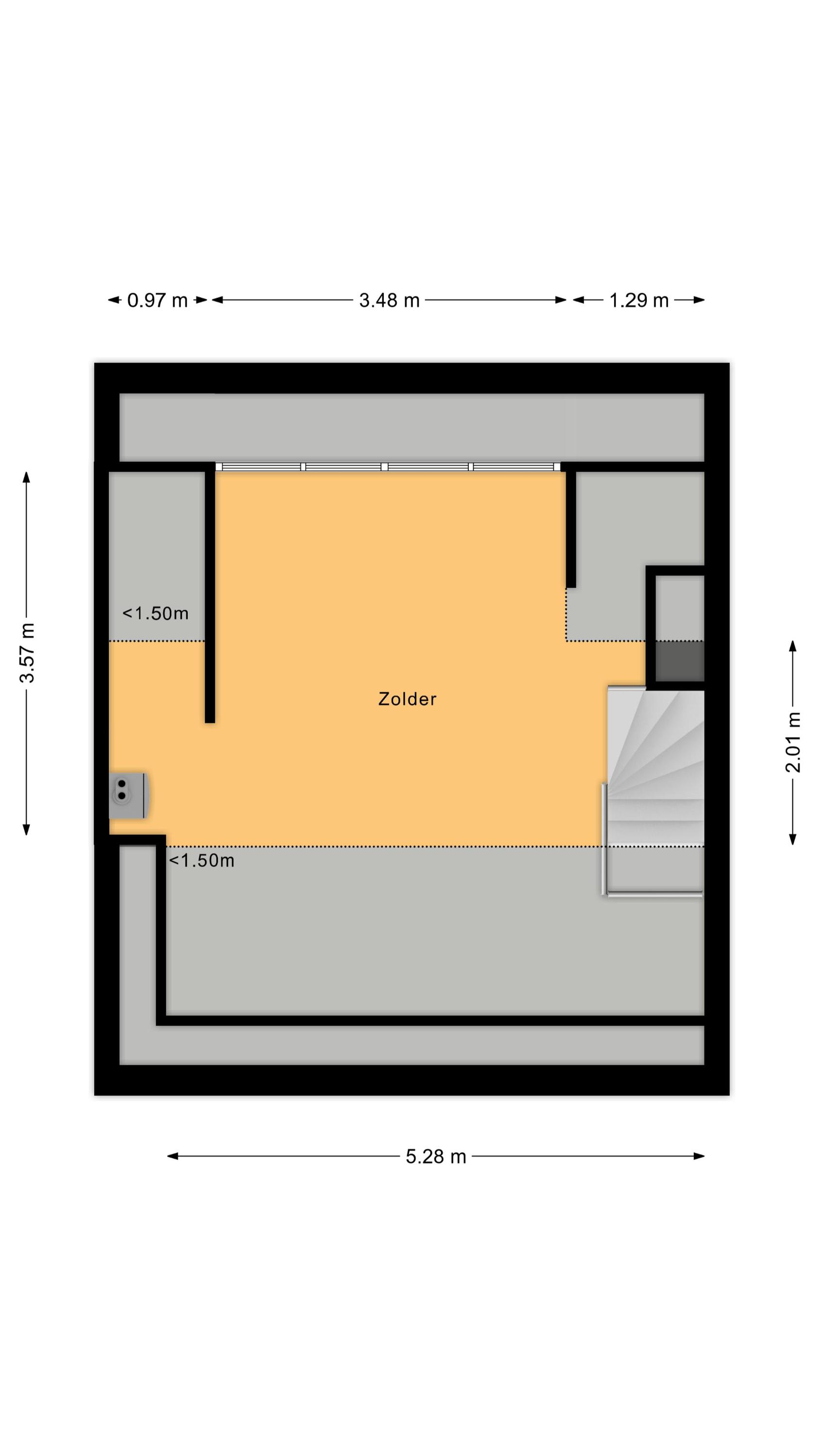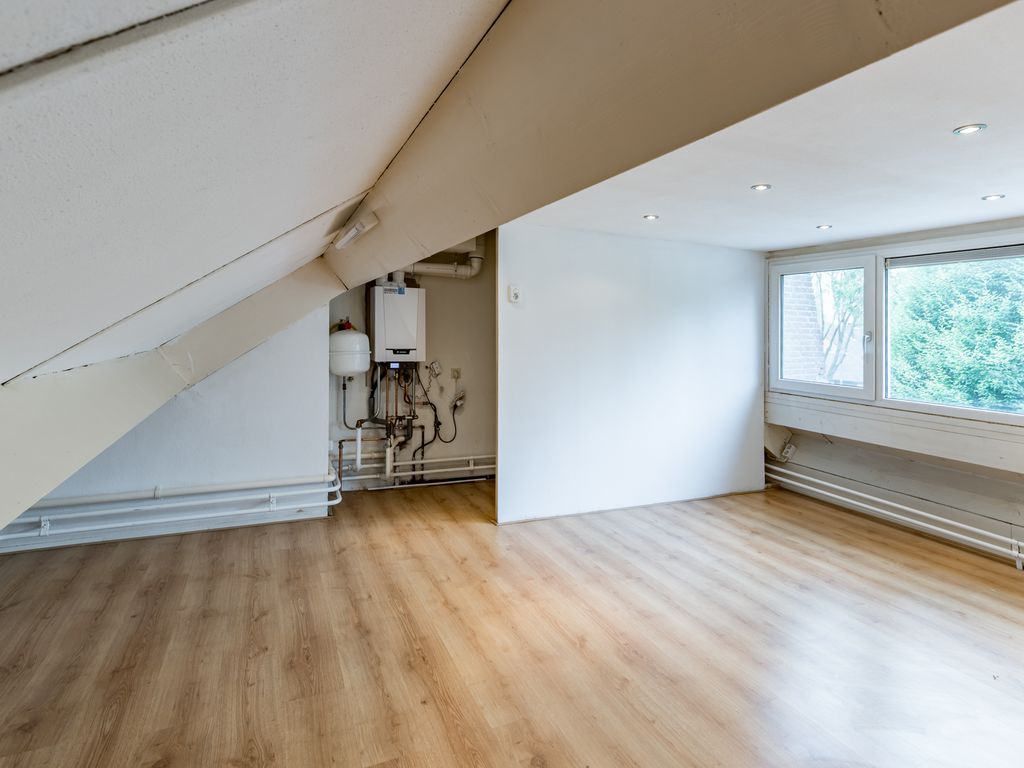 Bereikbaar via vaste trap; royale zolderkamer met kunststof dakkapel (2015), draai-/kiepramen, horren en rolluik.