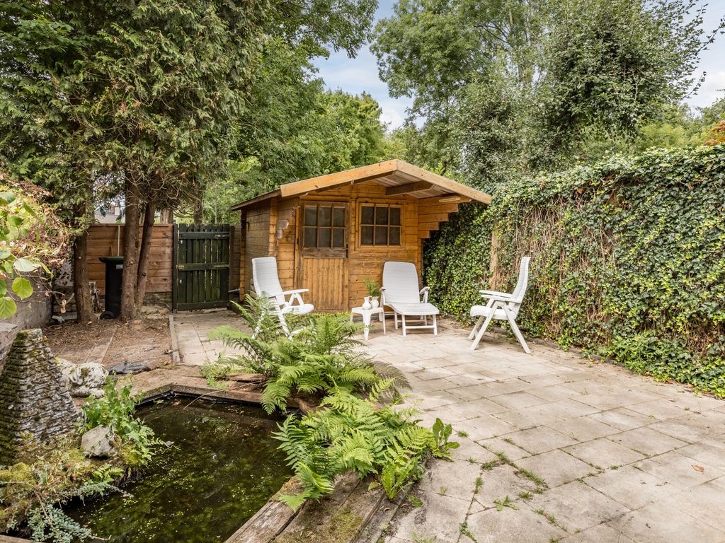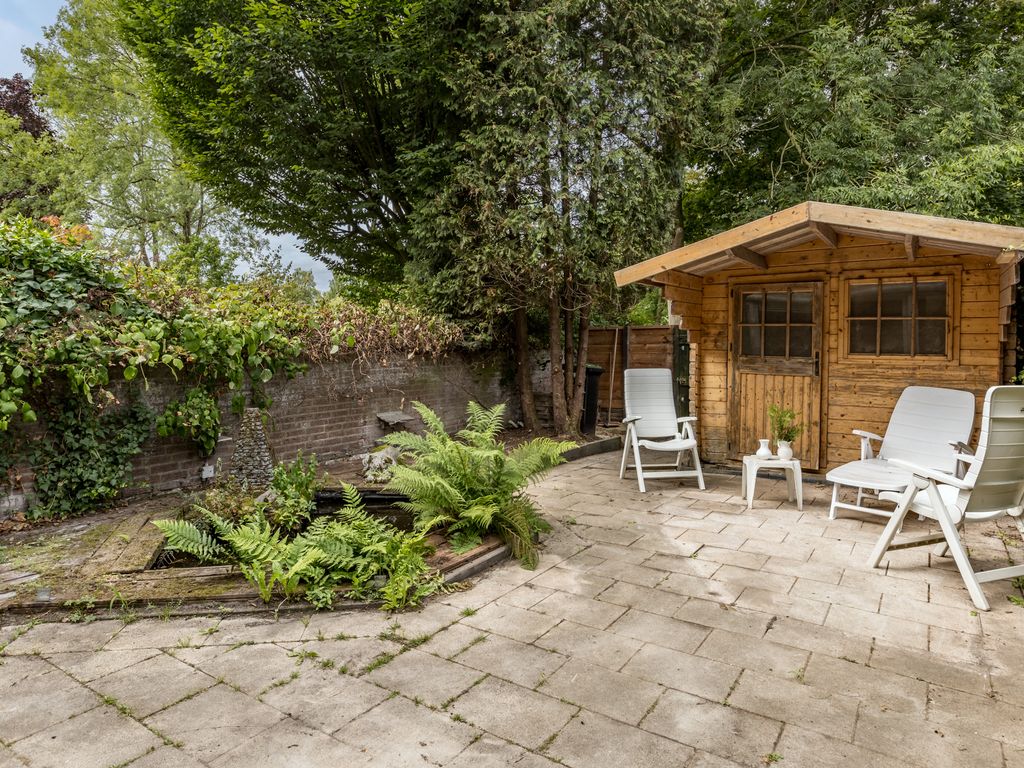 De achtertuin is gelegen op het zuidwesten en biedt veel privacy. Er is een houten berging en een achterom aanwezig. De ruime garage aan de voorzijde kan desgewenst worden verbouwd tot leefruimte of werkruimte.
