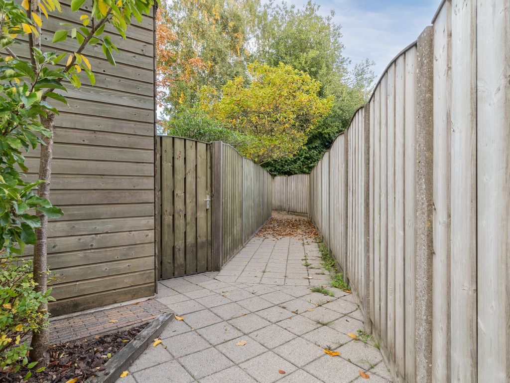 De ruime tuin ligt aan de zijkant van de woning en heeft een oppervlakte van circa 90 m².