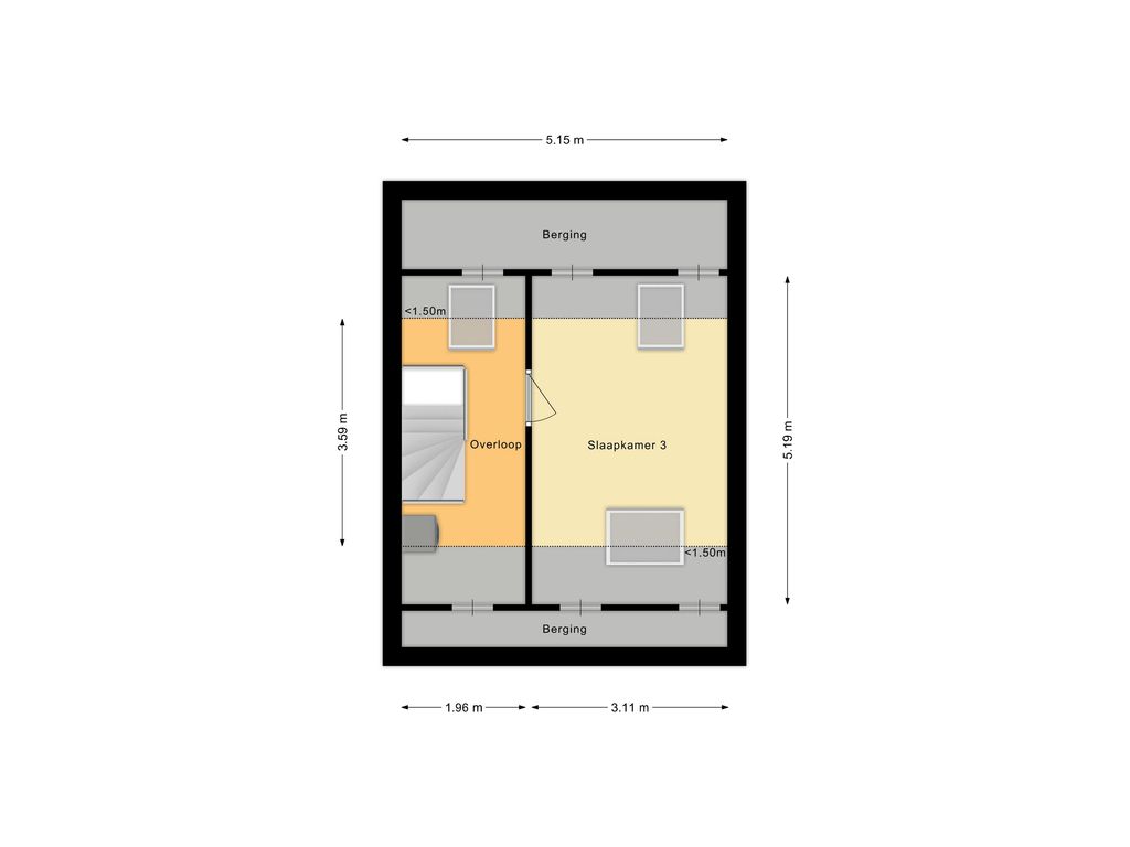 De tweede slaapkamer aan de voorzijde heeft een prettige lichtinval dankzij een extra raam in de zijgevel.